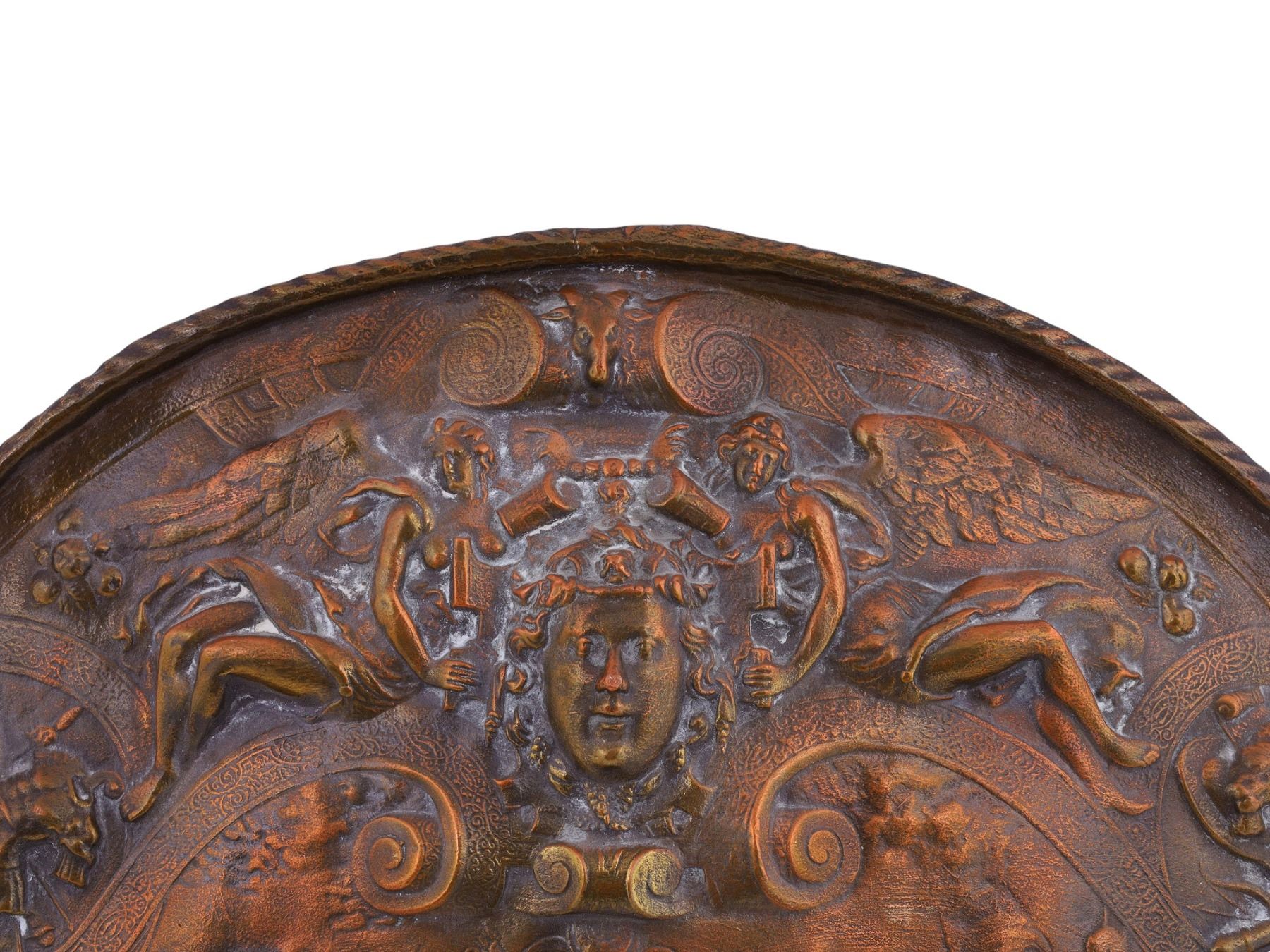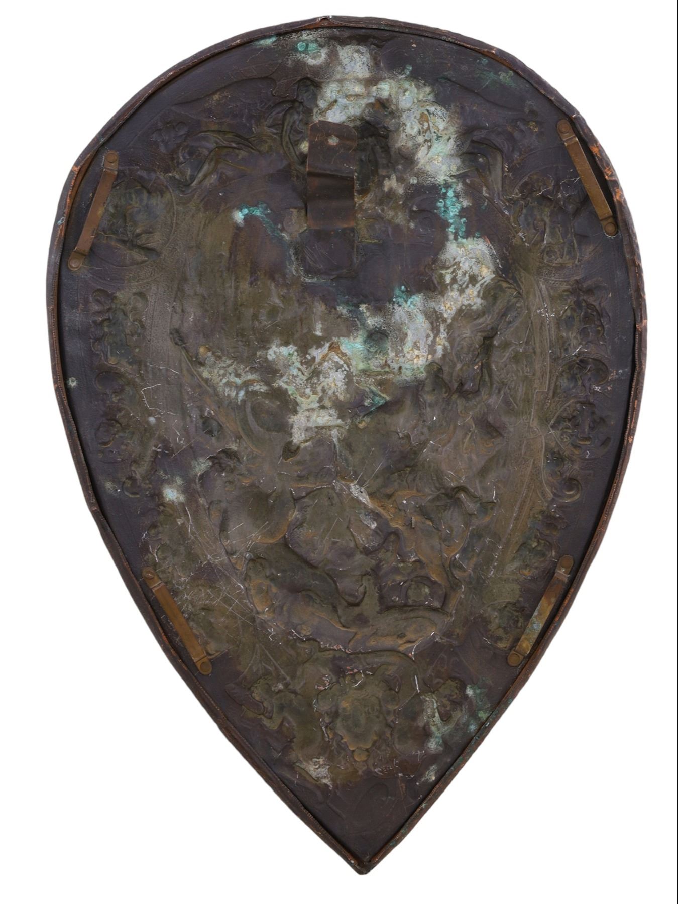 A EUROPEAN REPOUSSÉ DECORATED COPPER SHIELD, 19TH C.