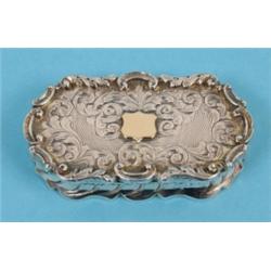 A Early Victorian Silver Snuff Box, engraved scrolls, with vacant cartouche, marks indistinct