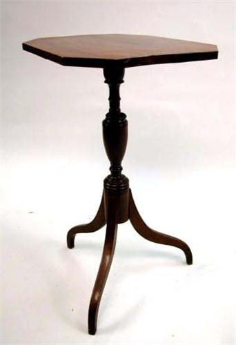A FEDERAL BIRCHWOOD OCTAGONAL CANDLESTAND; with a ring turned standard on spider legs, 28"h x 15 1/2"w x 18 1/2"d