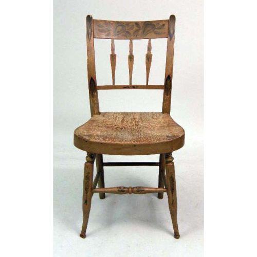 A FEDERAL "FANCY-PAINTED" RUSH SEAT SIDE CHAIR<BR><BR>New York or New England, losses to feet, 34-1/2"h