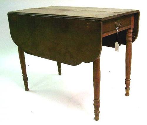 A FEDERAL MAHOGANY ONE-DRAWER PEMBROKE TABLE; New York, as found condition, top split