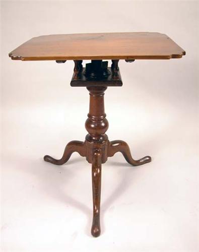 A FEDERAL MAHOGANY TILT-TOP BIRDCAGE CANDLESTAND; Pennsylvania, the shaped top above a compressed ball standard, downswept legs and snake feet, 27 1/2"H x 24"W x 18 3/4"D (restorations)