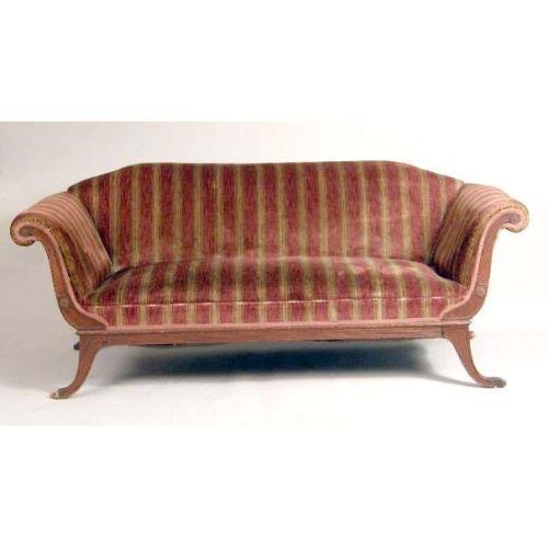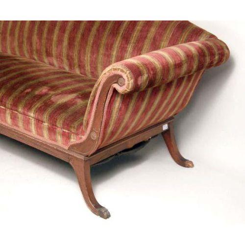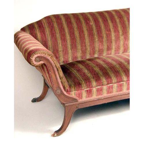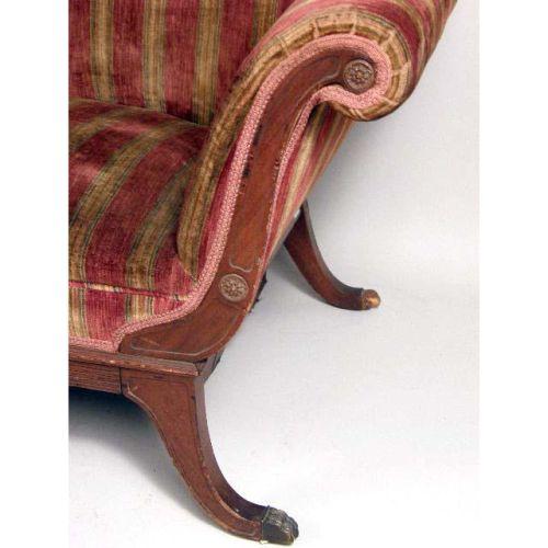 A FEDERAL STYLE CARVED MAHOGANY SETTEE<BR><BR>Some wear to feet, 6`4"l