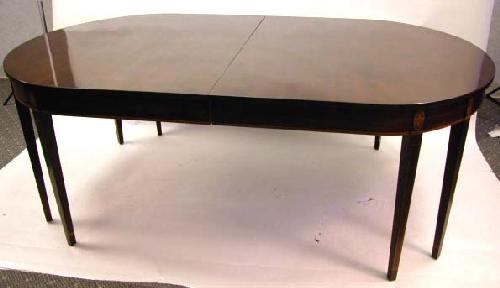 A FEDERAL STYLE EAGLE-INLAID MAHOGANY BANQUET TABLE; by Kindel furniture, with four leaves on square tapering legs, 29 1/2"h x 6'6" closed x 4'6"w