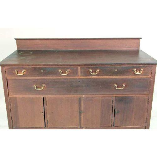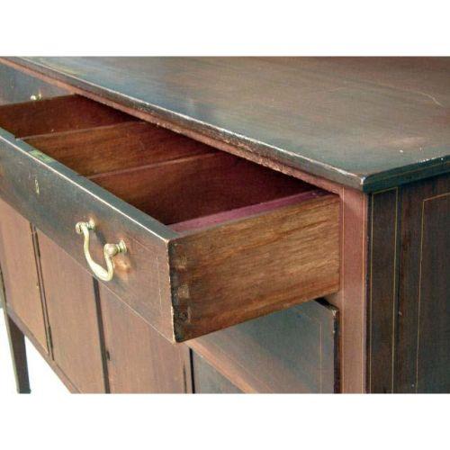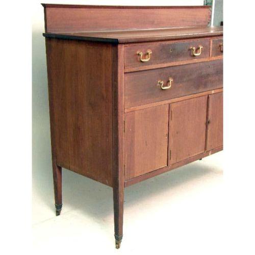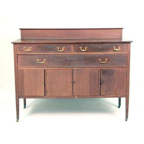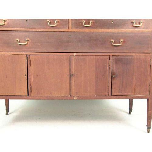 A FEDERAL-STYLE INLAID MAHOGANY SIDEBOARD<BR><BR>The cupboard doors opening to shelves, some wear, 48"h x 5`w x 23-1/2"d