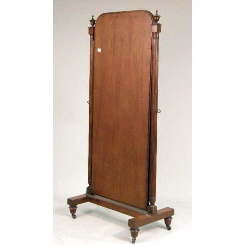 A FEDERAL STYLE MAHOGANY CHEVAL GLASS<BR><BR>Some wear to feet, 5`10"h x 32-1/2"w x 19"d