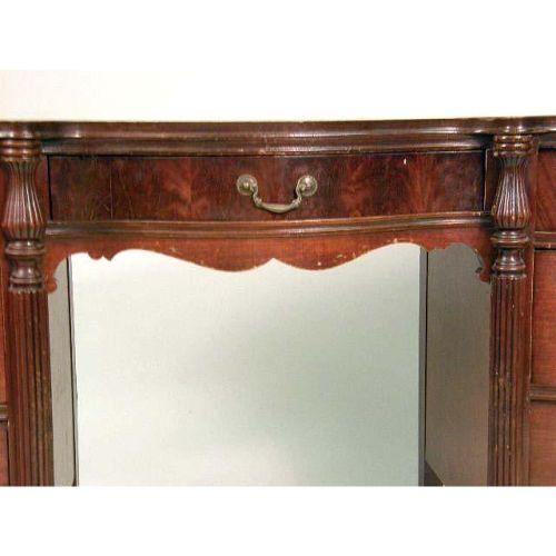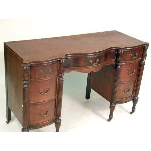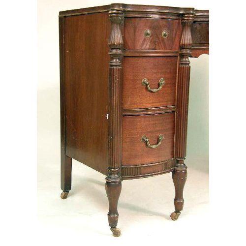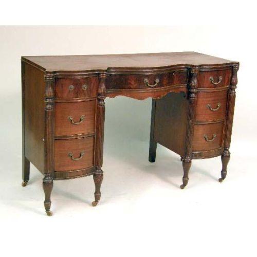 A FEDERAL STYLE MAHOGANY SERPENTINE-FRONT PEDESTAL DESK<BR><BR>American, some wear, 32"h x 4`w x 19"d
