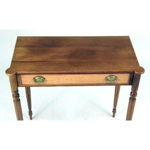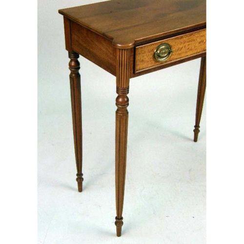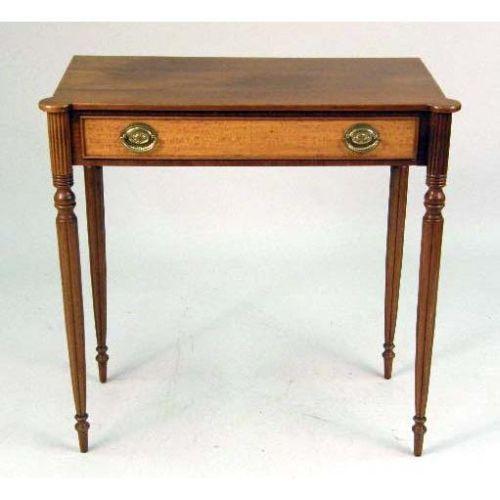 A FEDERAL-STYLE ONE-DRAWER SIDE TABLE<BR><BR>In the Massachusetts tradition, the drawer bearing a "Southampton" furniture label. 29 1/2" h x 29 1/2" w x 14 1/2" d. One front leg loose, needs regluing.