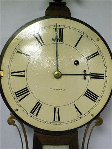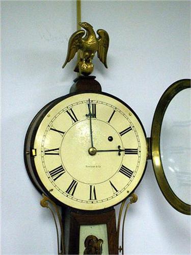 Retailed by and the dial marked "Tiffany & Co., Waltham Clock Co." Some losses to panel and craquelure to dial. 41"h x 10 1/2"w x 3 1/2"d.