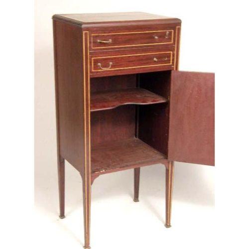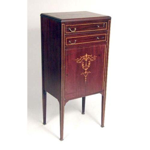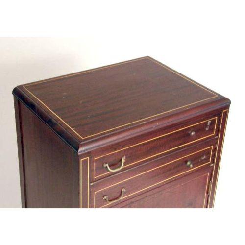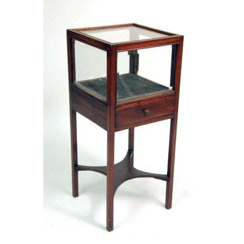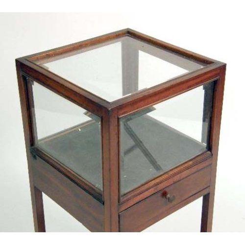 A FEDERAL-STYLE SHEET MUSIC CABINET<BR><BR>together with a small wood and glass vitrine. The cabinet lacking several shelves and pulls. Cabinet 43" high x 20" wide x 15" deep. 2 pieces.