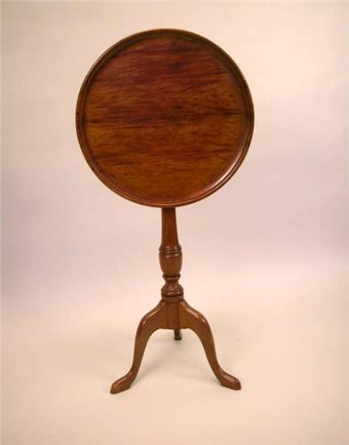 A FEDERAL WALNUT DISH TOP CANDLESTAND; Pennsylvania, the hinged top above a turned standard and snake feet 28 3/4"h x 17 1/2"w (repairs)