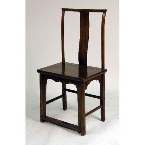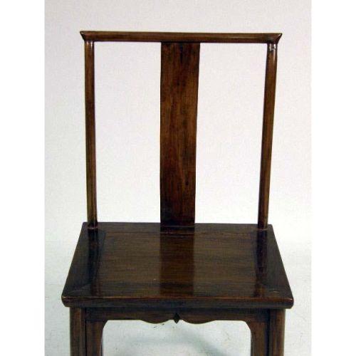 A FIGURED HARDWOOD YOKE BACK SIDE CHAIR<BR><BR>Chinese, minor repairs, 40-1/2"h