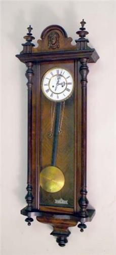 With carved mask pediment. Some losses to veneer and wear. 47"h x 16"w x 6 3/4"d.
