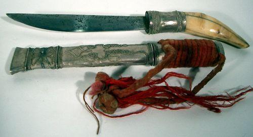 A FINE BURMESE SIDE KNIFE,c.1950s, the metal over