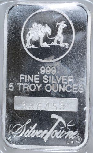 A FIVE OUNCE SILVERTOWNE .999 SILVER BAR, A GREAT SIZE FOR A GIFT