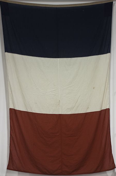 Souvenir from the battle of Verdun, a flag that flew over the battlefield ca. 1975, approx. 120" long, 76" along the hoist, cotton, in generally very good condition. The flag was obtained by an American veteran who after closing plied the battlefield caretaker with wine and was offered this flag as a gift. Verdun resulted in 306,000 battlefield deaths (163,000 French and 143,000 German combatants) plus at least half a million wounded. It was the longest and one of the most devastating battles in the history of warfare. With the veteran's letter of provenance.