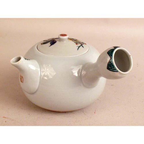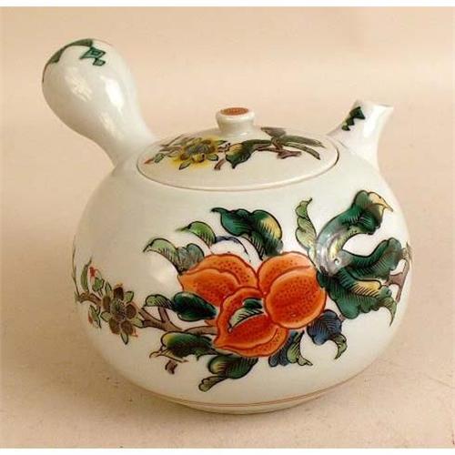 A FLORAL-DECORATED CERAMIC TEAPOT<BR><BR>Probably Japanese, chip to foot and underside of lid, 4 1/4"h x 6 1/2"w