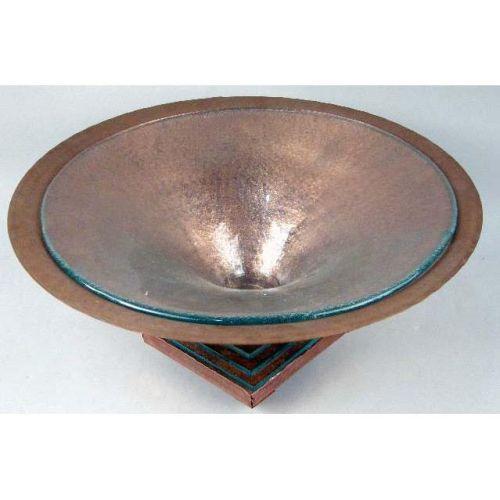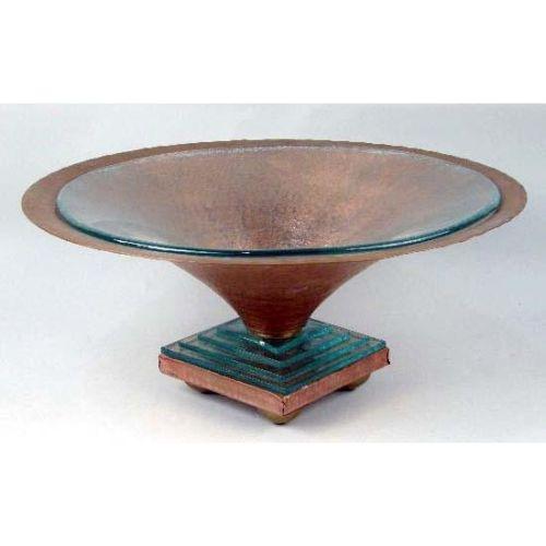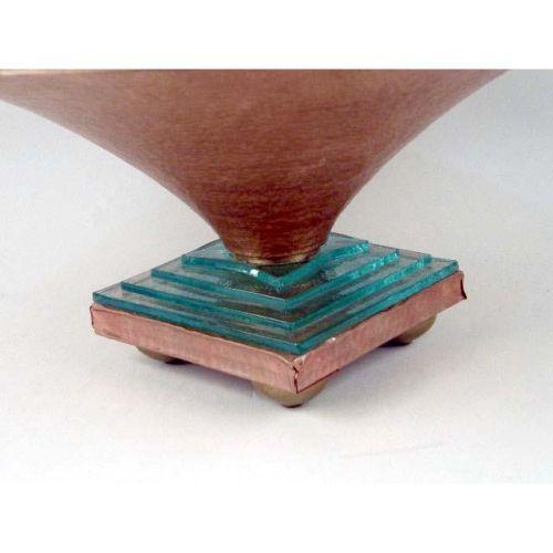 A FOOTED COPPER COMPOTE<BR><BR>With a glass foot and glass insert, 7 3/4"h x 17 1/2"dia.