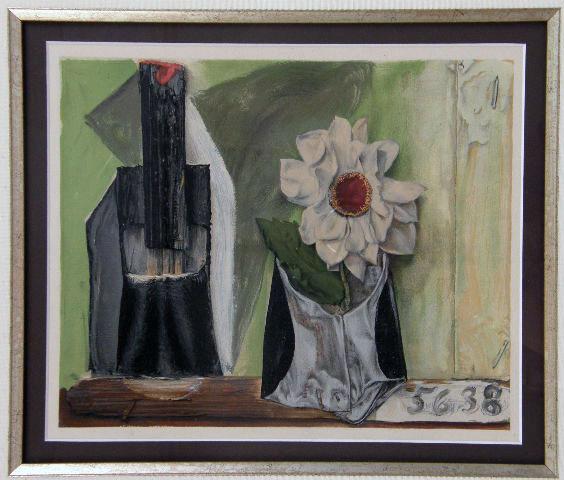 A FRAMED ABSTRACT STILL LIFE LITHOGRAPH