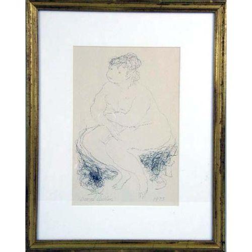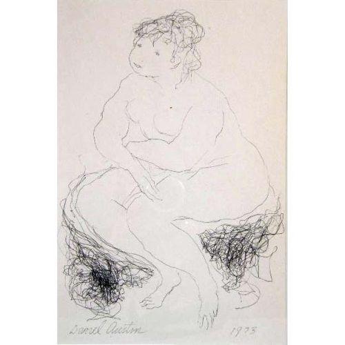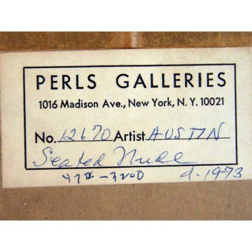 A FRAMED DRAWING ON PAPER<BR><BR>Seated Nude, signed l.l. Darrel Austin, dated l.r. 1973, bears paper label from the Perl Galleries, NY, 10"h x 7"w