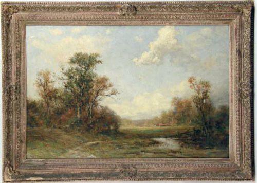 Signed l.l.c. E. Loyal Field (American 1856-1914). Edward Loyal Field was a late-nineteenth century landscape etcher and painter who studied art in Paris, France; upon his return to New York, he became a member of the prestigious Salmagundi Art Club. 19 1/2"h x 29"w