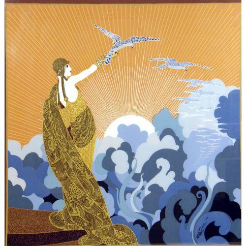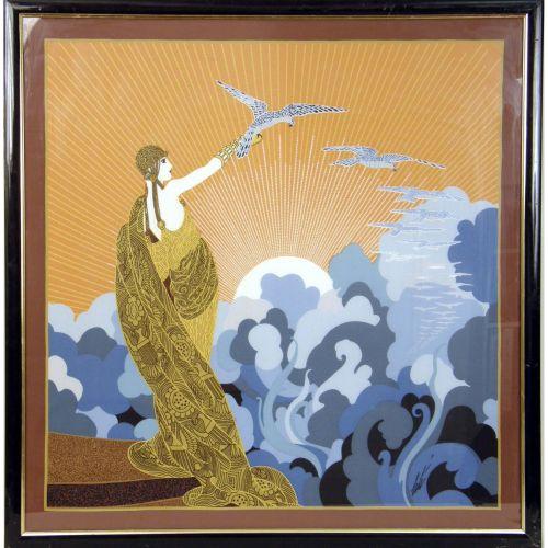 A FRAMED ERTE "THE WINGS OF VICTORY" SILK PRINT<BR><BR>Signed in print, 36" x 34-1/2"