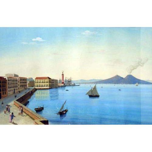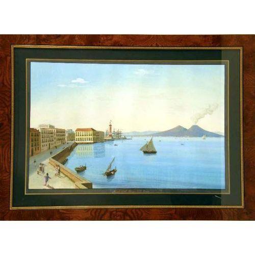 A FRAMED GOUACHE ON PAPER<BR><BR>Depicting the bay of Naples, titled "Napoli e il Bargo Di S. Lucia," 16-3/4"h x 26"w