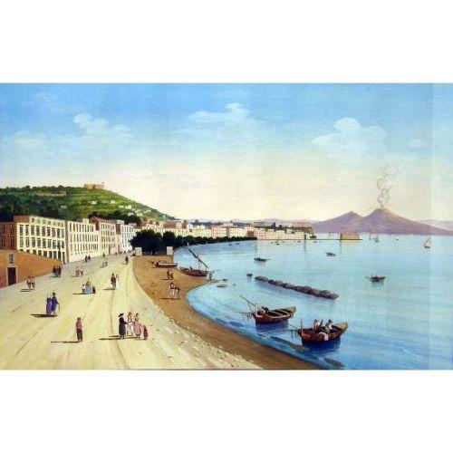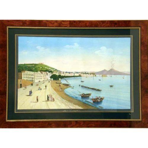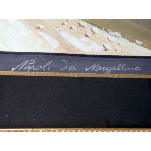 A FRAMED GOUACHE ON PAPER<BR><BR>Depicting the bay of Naples, titled "Napoli da Mergellina," 16-3/4"h x 26"w