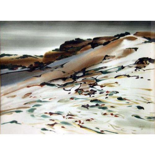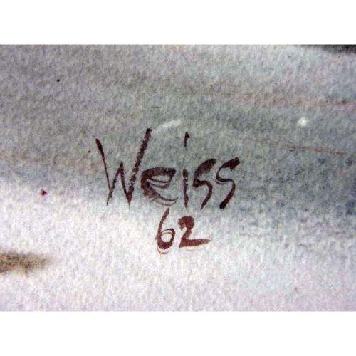 A FRAMED GOUACHE ON PAPER<BR><BR>Depicting an abstract winter landscape, bears signature Weiss `62, foxing and wear, 20-1/2"h x 27-1/2"w