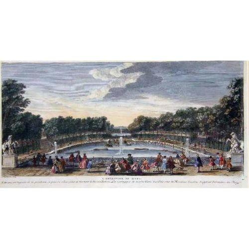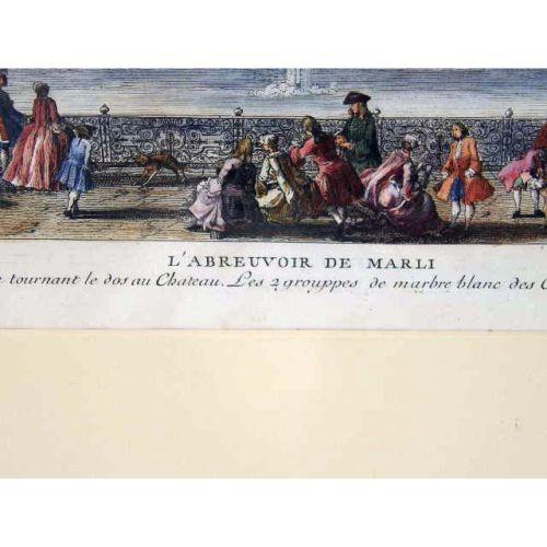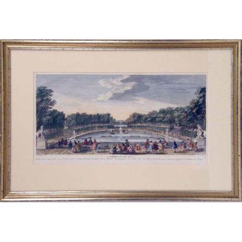 A FRAMED HAND TINTED ENGRAVING<BR><BR>Titled "L`Abreuvoir De Marli" 10"h x 19"w