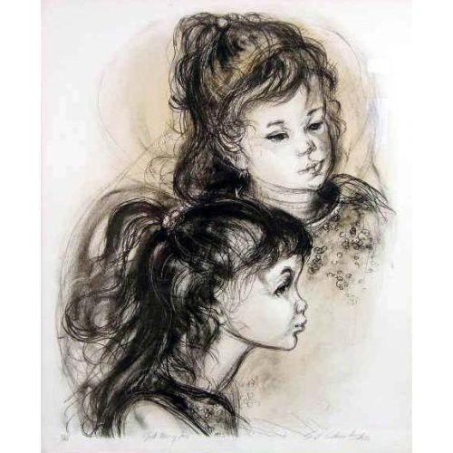 A FRAMED LITHOGRAPH<BR><BR>Depicting the faces of two young girls, edition 24/175, titled and signed in pencil, signature illegible, 23-1/2" x 19-1/2" sightline