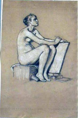Portrait of a seated nude female, attributed to Elihu Vedder (American, 1836-1923). Some foxing. Approximately 18 1/2"h x 12 1/2"w.