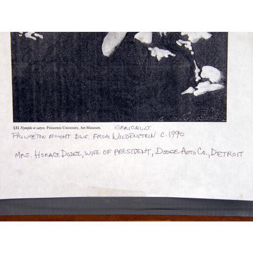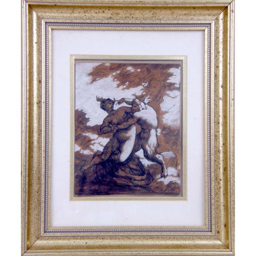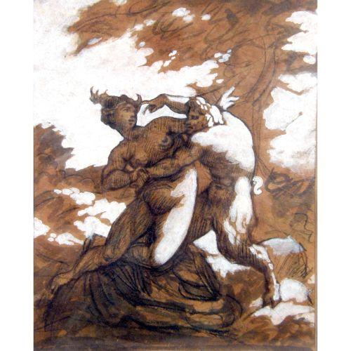 A FRAMED MIXED MEDIA ON PAPER<BR><BR>Titled "Nymphe et Satyre," attributed to Jean Louis Andre Theodore Gericault (1791-1824) unsigned, 9"h x 7"w Provenance: Mrs. Horace Dodge, Dodge Auto Co., Detroit