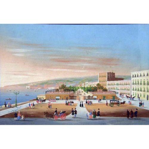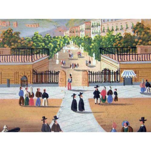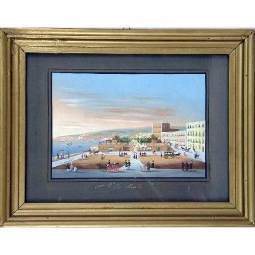A FRAMED NEOPOLITAN SCHOOL GOUACHE ON BOARD<BR><BR>Depicting The Villa Reale, matted and framed, 5-1/2"high x 8"