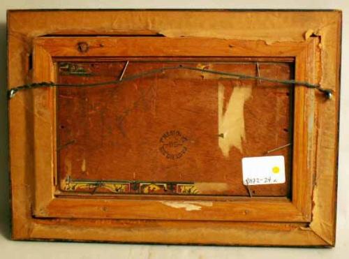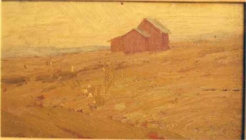 Depicting red barn amidst fields, appears to be unsigned, the verso bears a partially legible pencil name, ? Sopanoff (sp?). 4 1/2"h x 7 3/4"w.