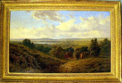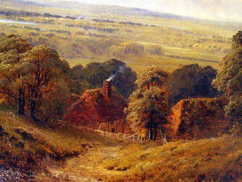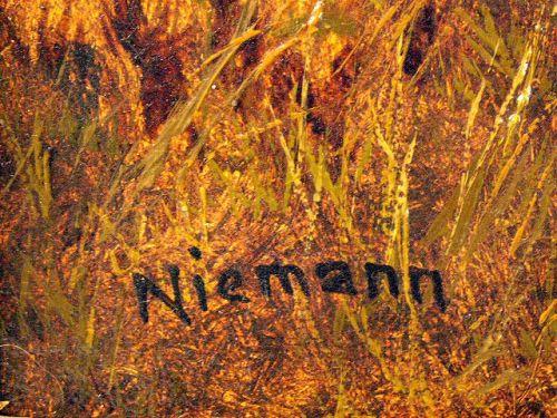 Depicting a cottage in the valley, bears signature ll Edmund J. Nieman (1813-1876). 21 1/2"h x 35"w.