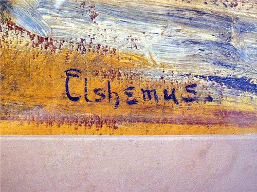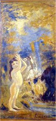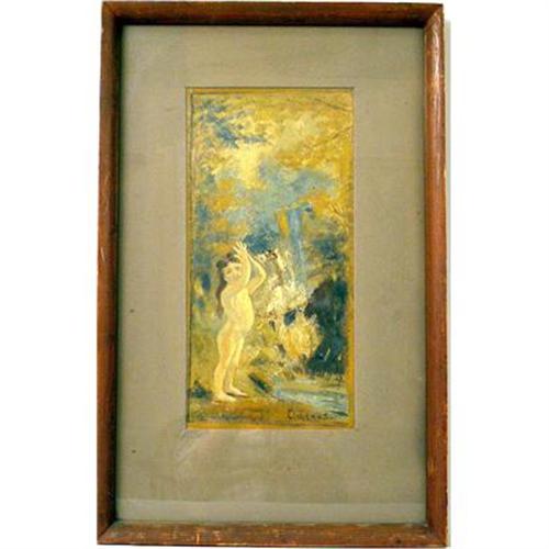 Depicting a nymph in the woods, bears signature lr Elshemis. 15 1/4"h x 7 1/4"w.