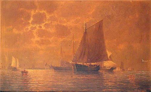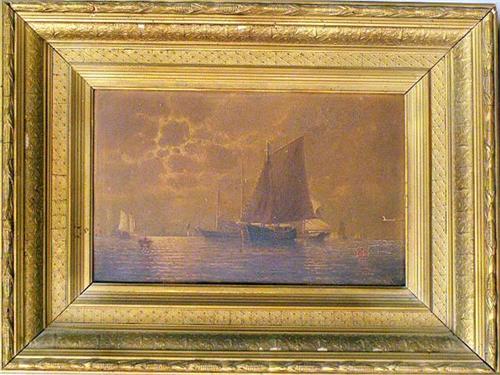 Depicting ships at sea, bears signature and date lr Clark Oliver (American, 1827-1893) 79. Losses. 8"h x 13"w.
