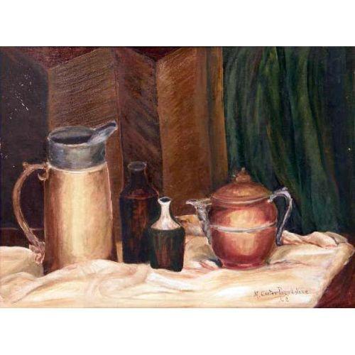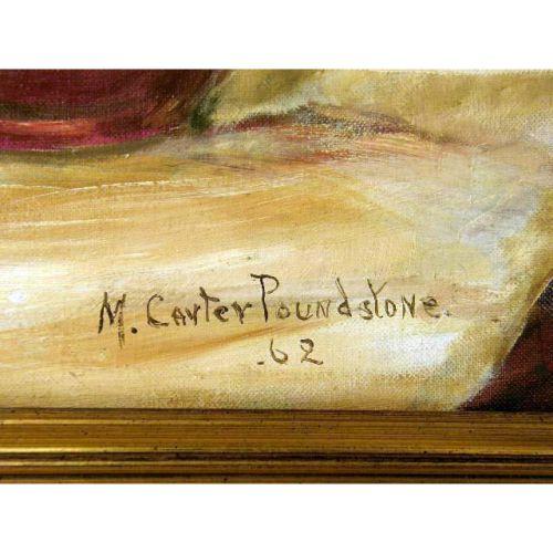 A FRAMED OIL ON BOARD<BR><BR>Depicting a still life, bears signature "M. Carter Poundstone, 62" 17-1/2"h x 17-1/2"w