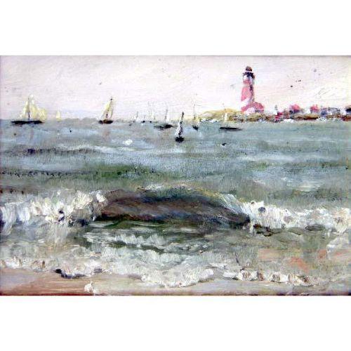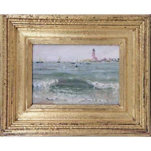 A FRAMED OIL ON BOARD<BR><BR>Depicting Barnegat Lighthouse, NJ, 5"h x 7"w