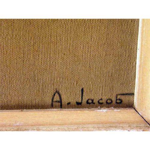 A FRAMED OIL ON BOARD<BR><BR>Titled "Tranquil Morn," bears signature "A. Jacob," 21-3/4"h x 29-3/4"w