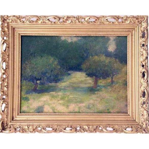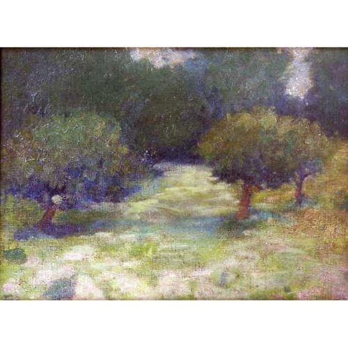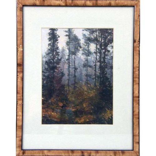 A FRAMED OIL ON BOARD<BR><BR>Depicting a forest scene, losses, 7-1/2"h x 10"w. Together with a similar framed pastel, 8-3/4"h x 6-1/2"w