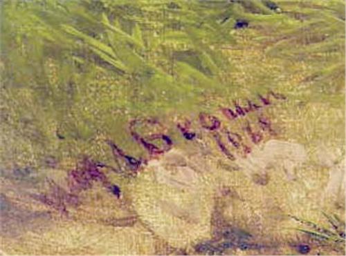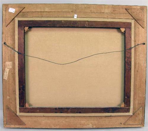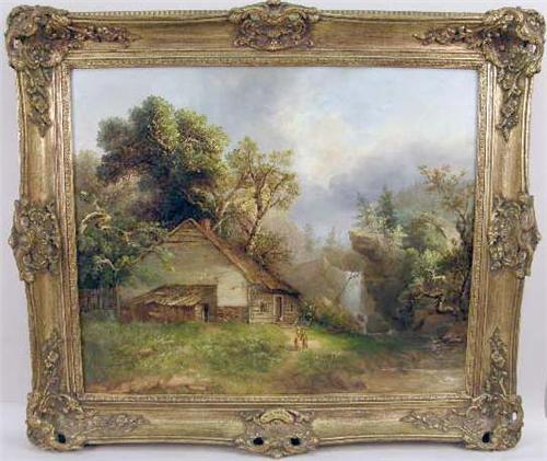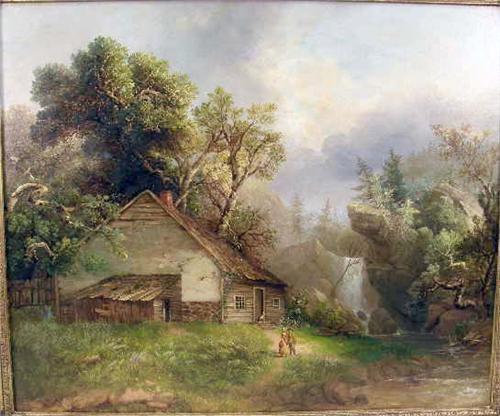 Signed and dated l.r.c. W. M. Brown 1869 (American, 1828-1898). Along with Martin Johnson Heade, William Mason Brown was among an elite group of artists equally adept at landscape as well as still-life painting. Born in Troy, New York, he studied under Thomas Grinnell and later with the portraitist Abel B. Moore. In 1850 he followed Moore to Newark, NJ, where he continued his art education. It was here, inspired by Thomas Cole and the romantic artists of the Hudson River School, that he began to paint landscapes, his primary subject matter from 1850 to 1869, after which he switched over to still-lifes. Brown`s work can be found in numerous public collections including the Corcoran Gallery, Washington, DC; the Pennsylvania Academy of the Fine Art, Philadelphia, PA; the J.B. Speed Museum, Louisville, KY; the Haggin Museum, Stockton, CA; the Munson Williams Proctor Institute, Utica, NY; the St. Johnsbury Athenaeum, St. Johnsbury, Vermont; Cleveland Museum of Art, Cleveland, Ohio; the Hood Museum at Dartmouth College, Hanover, New Hampshire, and the Peabody Institute, Baltimore, MD. Linda Ferber, in her landmark 1985 book "The New Path: the American Pre-Raphaelites", wrote extensively about Brown. Sight size 25 1/2"h x 29 1/2"w