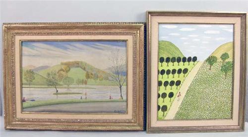 Signature l.r. Bouquet 1967, inscribed verso "Bords Del Yonne". Together with a framed oil on canvas inscribed l.l. Journey, M. Falco. 15 1/2"h x 24"w and 17 1/2"h x 15"w