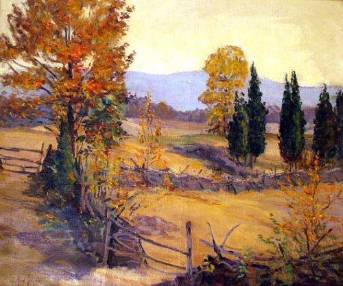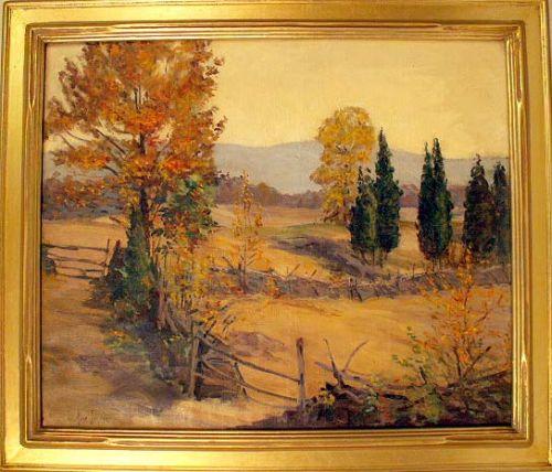 Titled "The Waning Year", depicting an autumnal landscape, signed ll Alice Judson (American, 1876-1948). Sightline 25 1/4"h x 30"w.