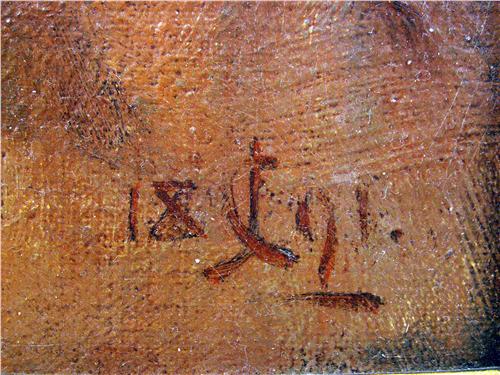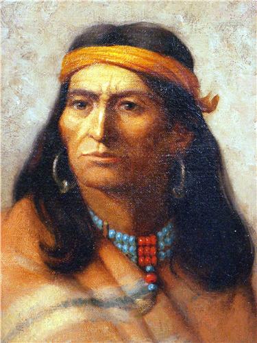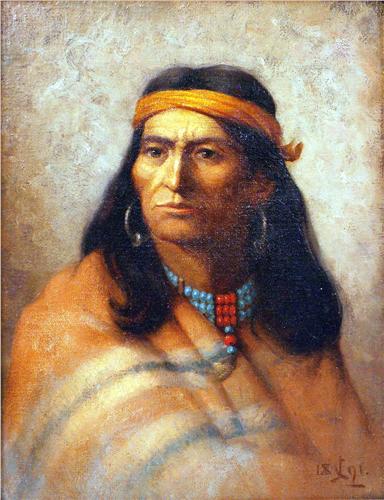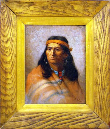 Portrait of a Native American man beading, possibly Geronimo, bears initials and date lr C.J.? 1891. 12"h x 9 1/2"w.