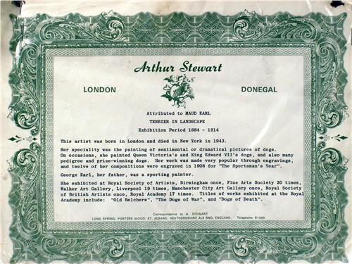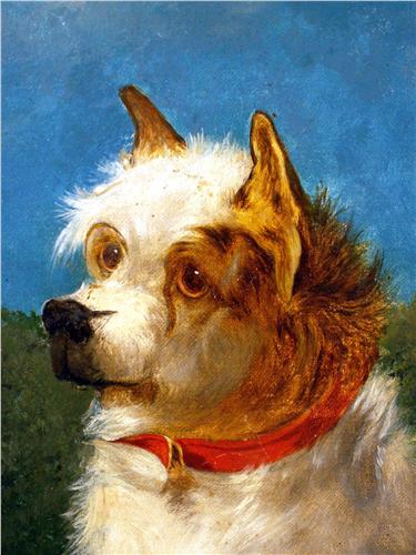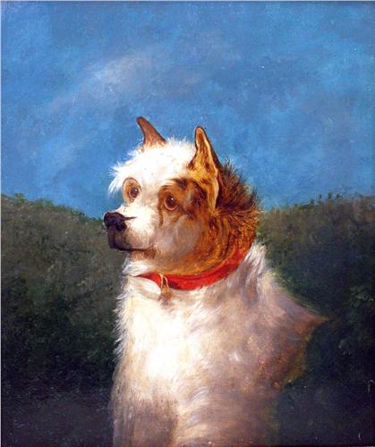 Portrait of a Wire Haired Terrier, attributed to Maud Earl (English, 1864-1943). 13 1/2"h x 11 1/4"w.