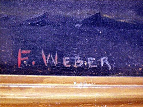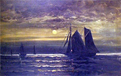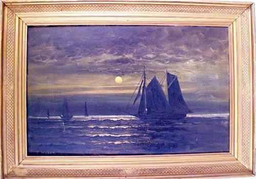 Depicting a nocturnal ship scene, bears signature ll F. Weber. 17 1/2"h x 28"w.