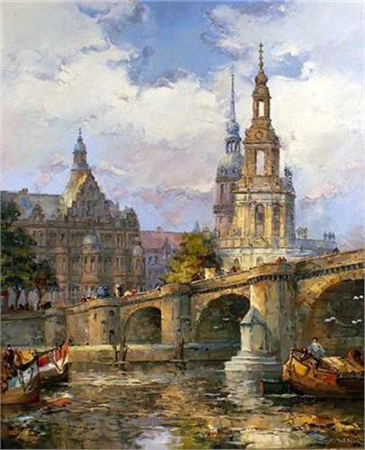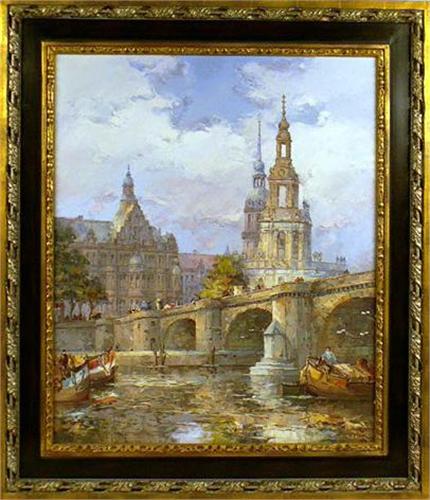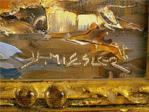 A Continental riverscape, bears signature, lr, Miesler, 19"h x 23"w