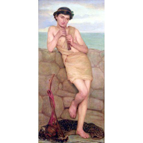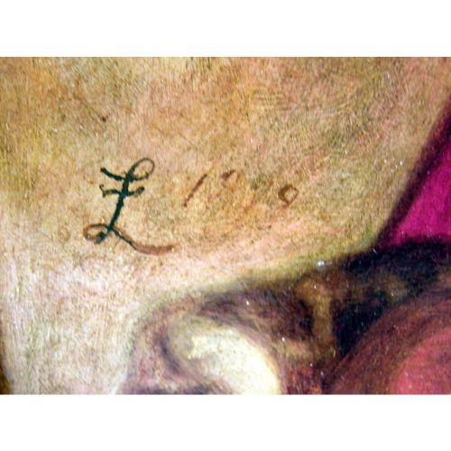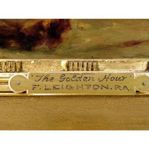 A FRAMED OIL ON CANVAS<BR><BR>With attached brass plaque reading "The Golden Hour F. Leighton R.A.", monogram ll. F & L conjoined, gilt gesso frame, 33" x 15" sightline